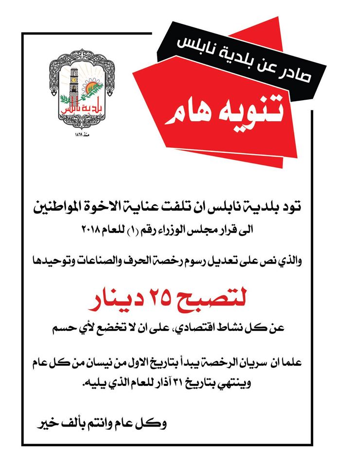 قرار تعديل رسوم رخصة الحرف والصناعات