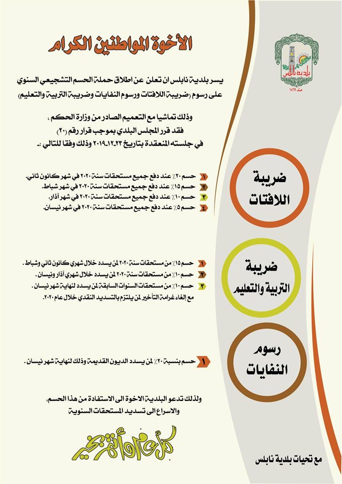 اطلاق حملة رسوم ضريبة اللافتات ورسوم النفايات وضريبة التربية والتعليم