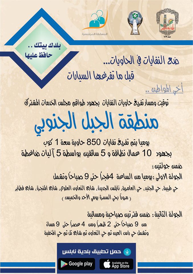 توقيت ومسار تفريغ حاويات النفايات من منطقة الجبل الجنوبي