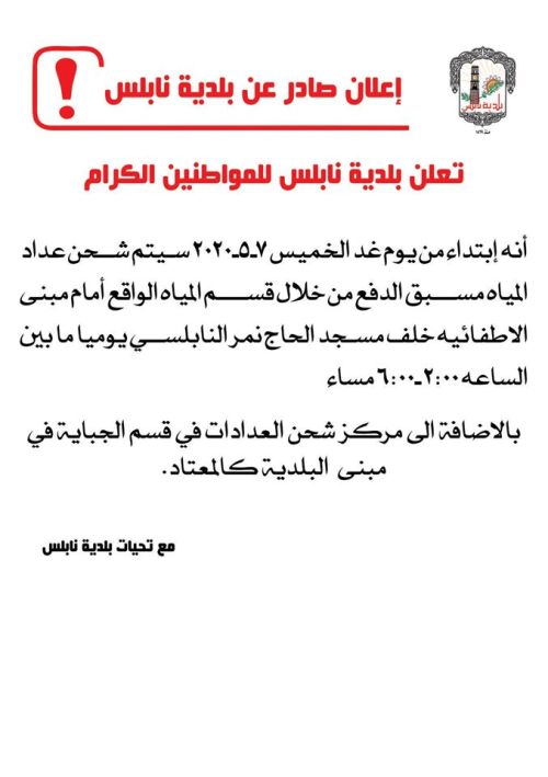 تعديل ساعات عمل مراكز شحن عدادات المياه مسبقة الدفع