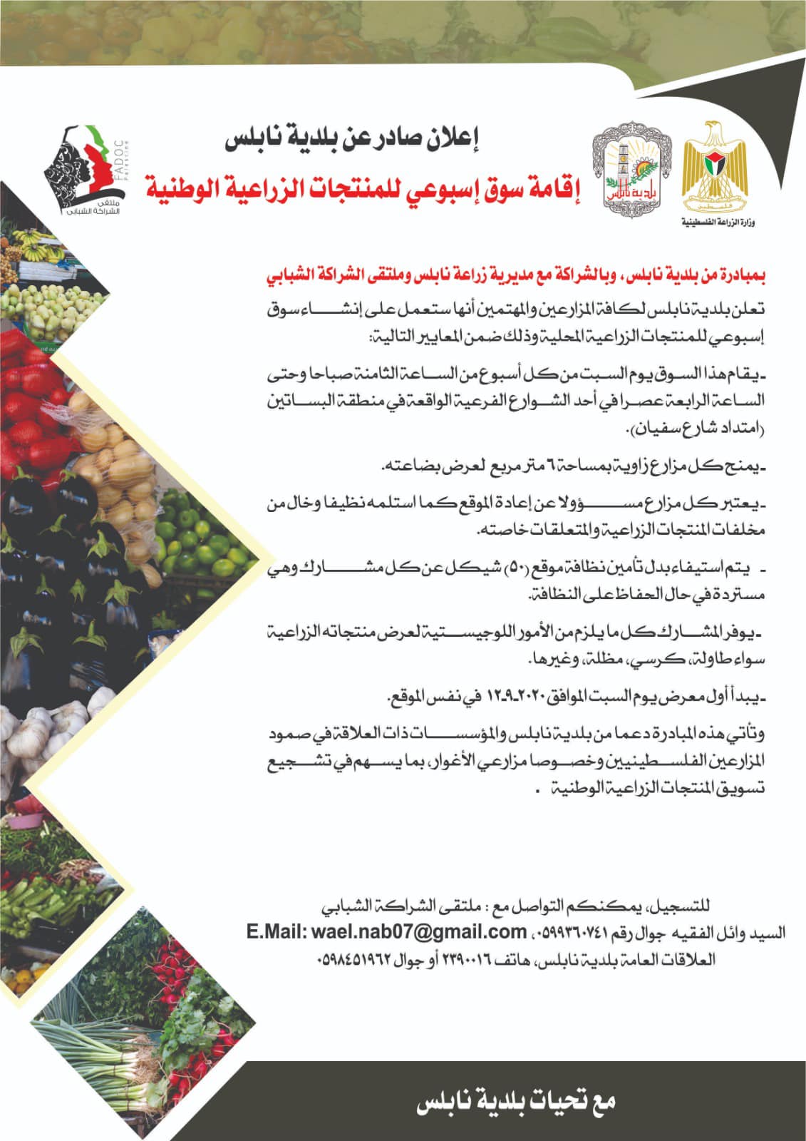 إعلان عن تنظيم سوق أسبوعي للمنتجات الزراعية