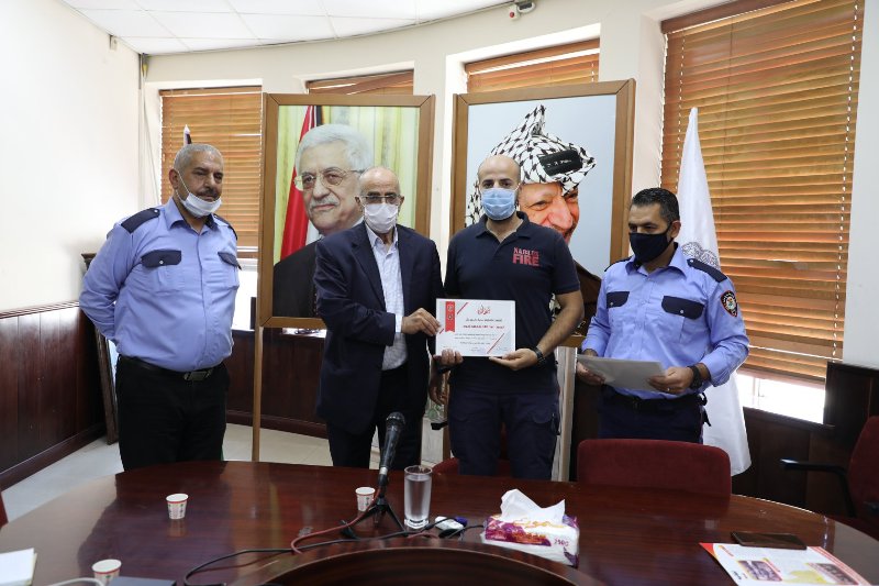 جانب من تكريم رئيس بلدية نابلس للمشاركين في دورة تدريبية لرجال الاطفاء