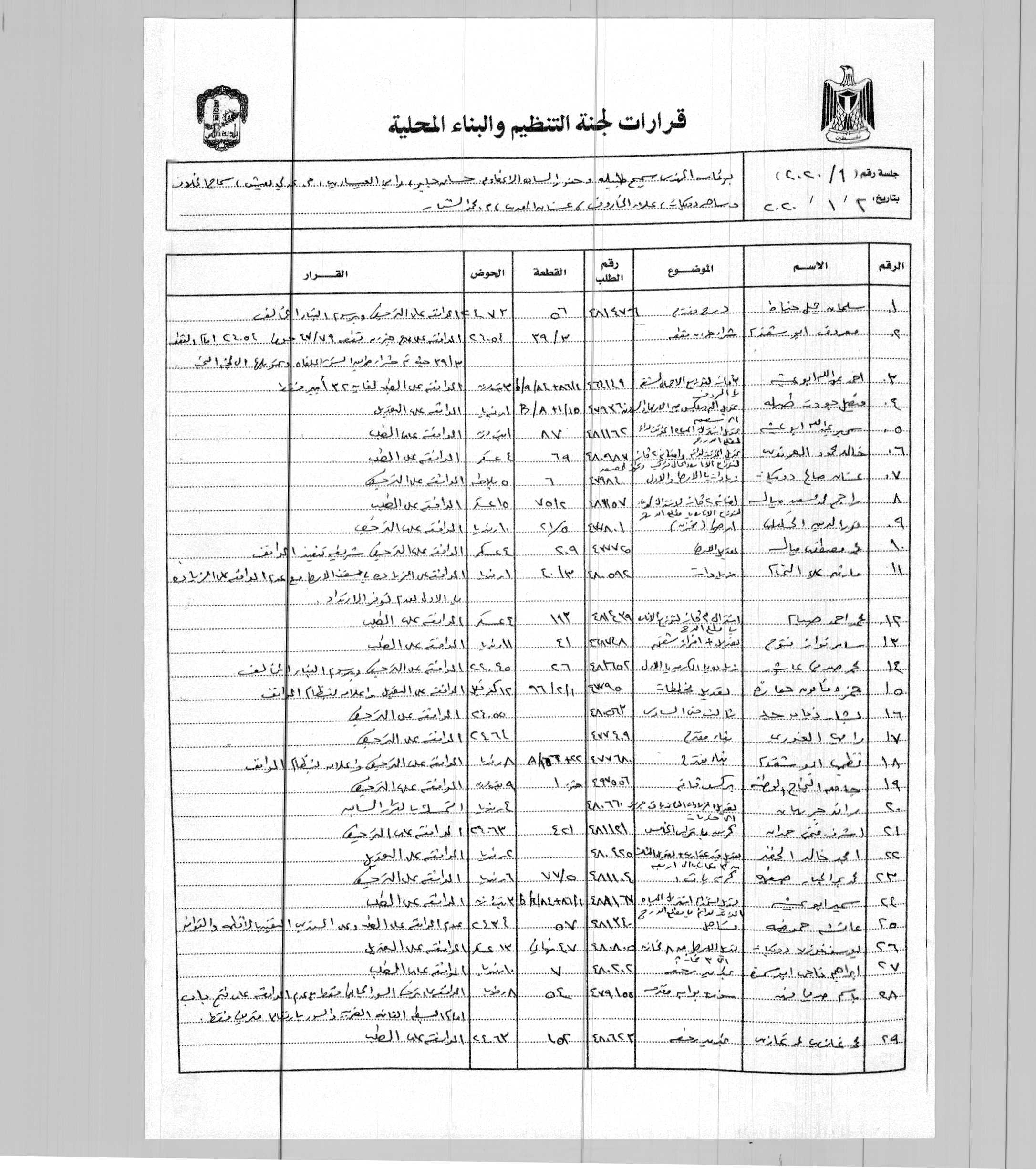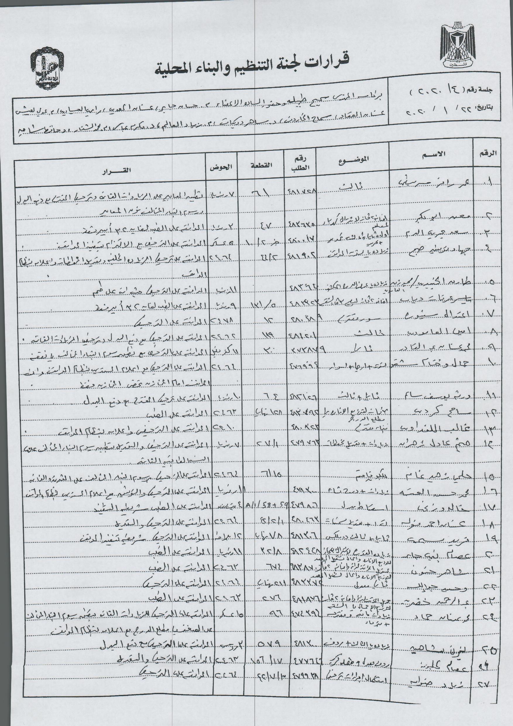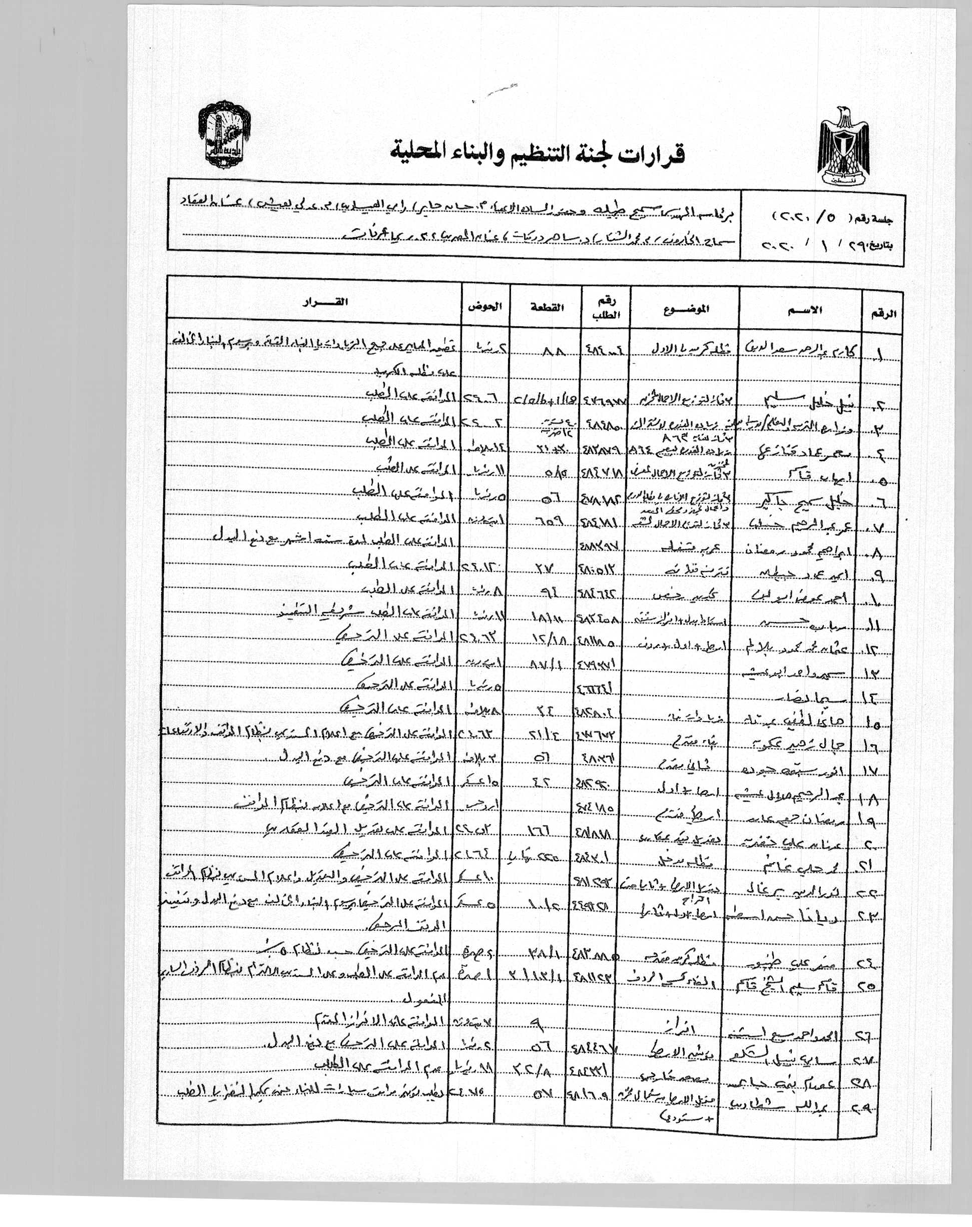 قرارات لجنة التنظيم شهر 1/2020