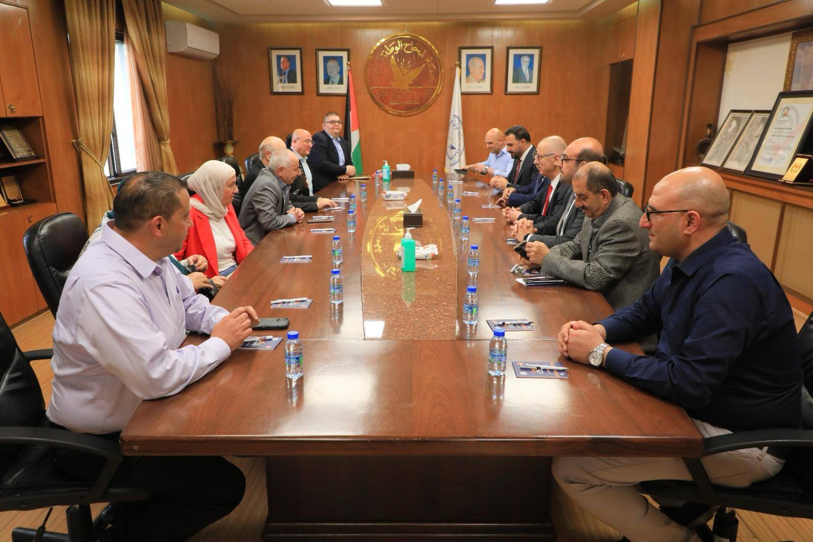 تعزيزًا للتعاون المشترك والدور الأكاديمي والوطني لجامعة النجاح ومستشفاها الجامعي، التقى وفد من بلدية نابلس برئاسة الدكتور حسام الشخشير، ونائبته الدكتورة زهرة الواوي، وعدد من أعضاء المجلس البلدي وموظفي البلدية؛ بدولة الأستاذ الدكتور رامي الحمد الله، نائب رئيس مجلس أمناء الجامعة، ورئيس مجلس أمناء مستشفى النجاح الوطني الجامعي، في زيارة رسمية للجامعة؛ وذلك بحضور رئيس الجامعة الأستاذ الدكتور عبد الناصر زيد، ونائب رئيس الجامعة للشؤون الأكاديمية الدكتور عبد السلام الخياط، والمدير المالي الأستاذ رشيد الكخن، ومستشار رئيس الجامعة للعلاقات العامة والاتصالات التسويقية الأستاذ أحمد السرغلي.