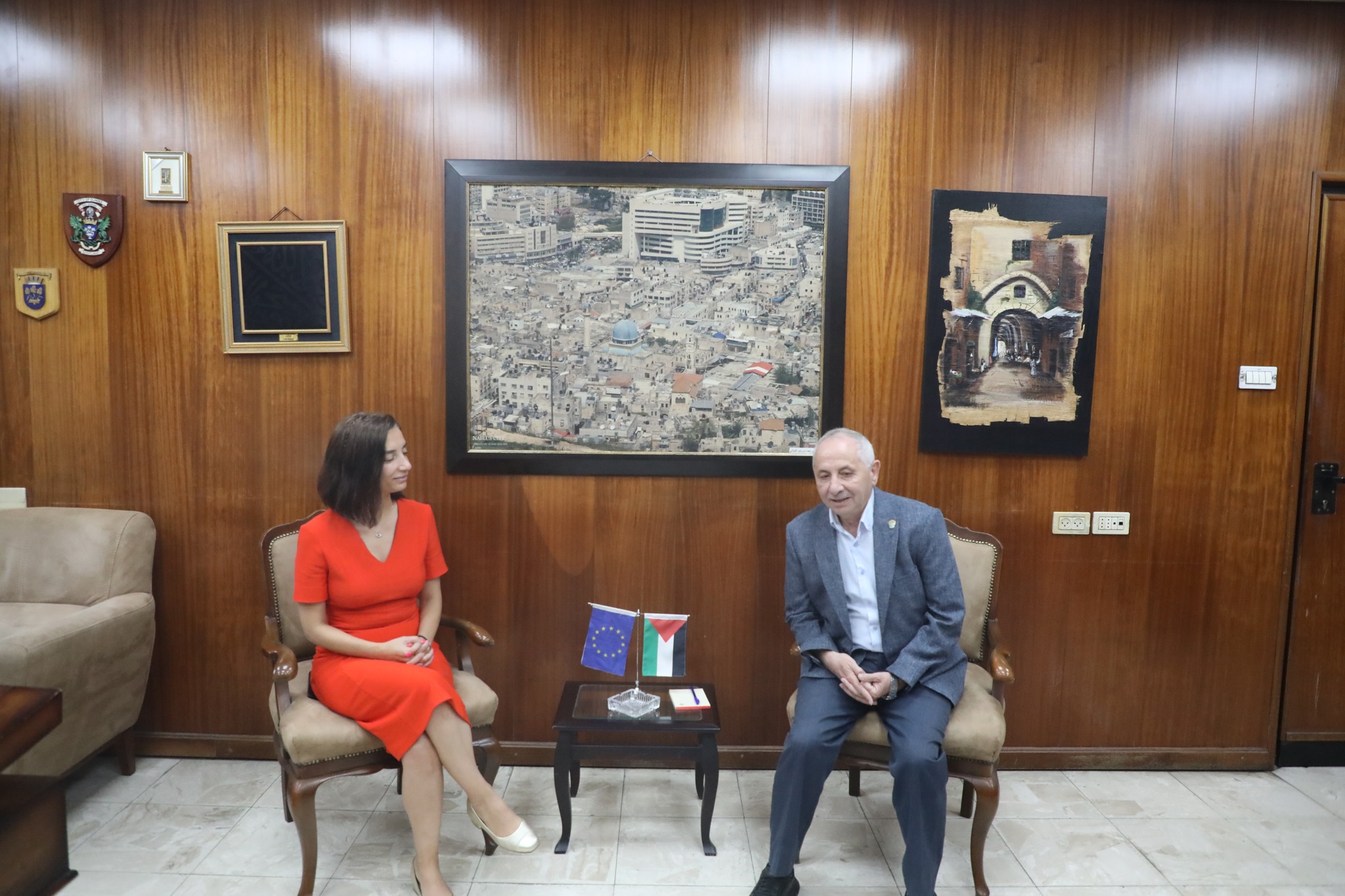 جانب من زيارة عضو لجنة الشؤون الخارجية، مقررة فلسطين في البرلمان الأوروبي السيدة إيفين إنسر، وممثل الاتحاد الأوروبي في فلسطين السيد ألكسندر ستوتزمان، ومسؤول التواصل في مكتب الاتحاد الأوروبي السيد شادي عثمان إلى بلدية نابلس برفقة عضو مجلس إدارة جمعية بذور للثقافة والتنمية السيد سيف عقل ، حيث استقبلهم رئيس البلدية الدكتور حسام الشخشير ونائبة المهندس إياد خلف وعضو المجلس البلدي الدكتور سامح أبو سير.