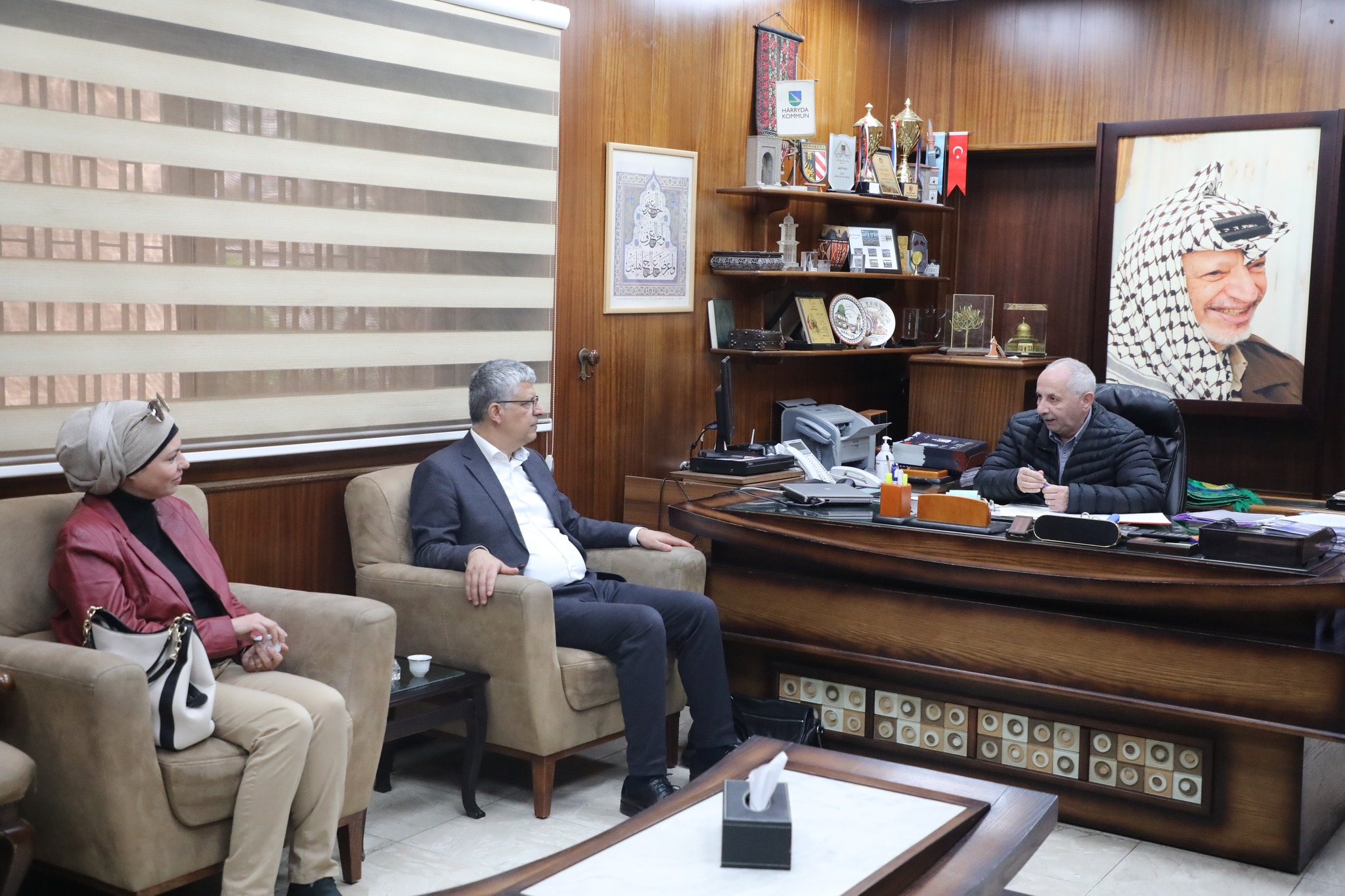 استقبل رئيس بلدية نابلس الدكتور حسام شخشير ونائبيه الدكتورة زهرة الواوي والمهندس إياد خلف، وعدد من أعضاء المجلس البلدي، وبعض رؤساء الأقسام في البلدية وفدا من قادة الأجهزة الأمنية في محافظة نابلس ضم مدير الأمن الوقائي العميد مهند مرزوق، ومدير المخابرات العامة العميد عماد ابو حنانة، ومدير شرطة محافظة نابلس العميد مقداد سليمان، وقائد منطقة نابلس العقيد محمد الرجوب، ومدير الاستخبارات العسكرية العقيد شادي اشتية ونائب مدير الارتباط الفلسطيني العقيد عثمان عطايا، إضافة إلى عدد من الضباط العاملين في الأجهزة الأمنية المختلفة.