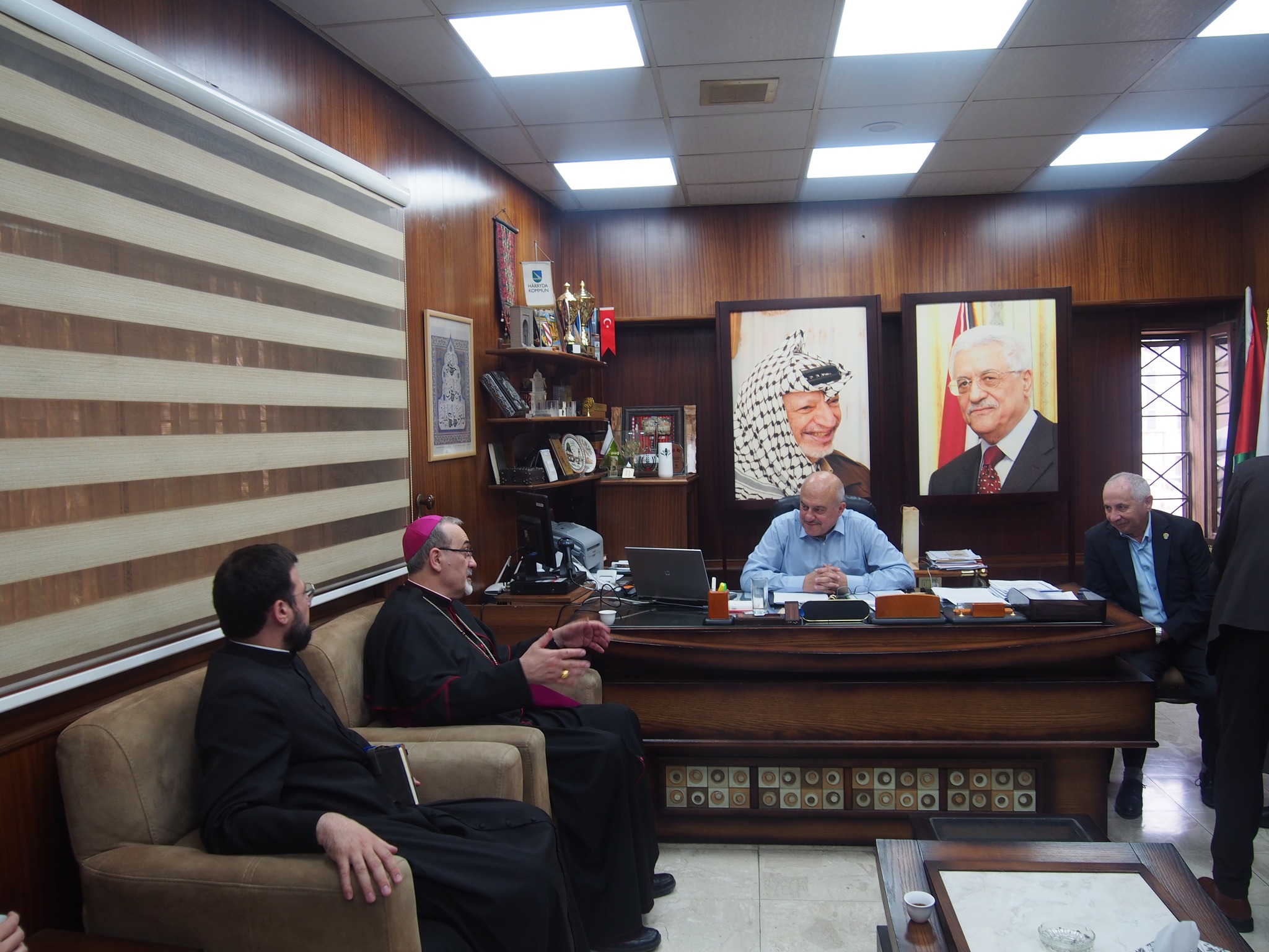 استقبل رئيس بلدية نابلس الدكتور سامي حجاوي ونائبيه اليوم غبطة البطريرك بيير باتيستا بيتسابالا بطريرك اللاتين في الأراضي المقدسة والأردن وقبرص بحضور عدد من ممثلي الكنيسة المسيحية في نابلس.