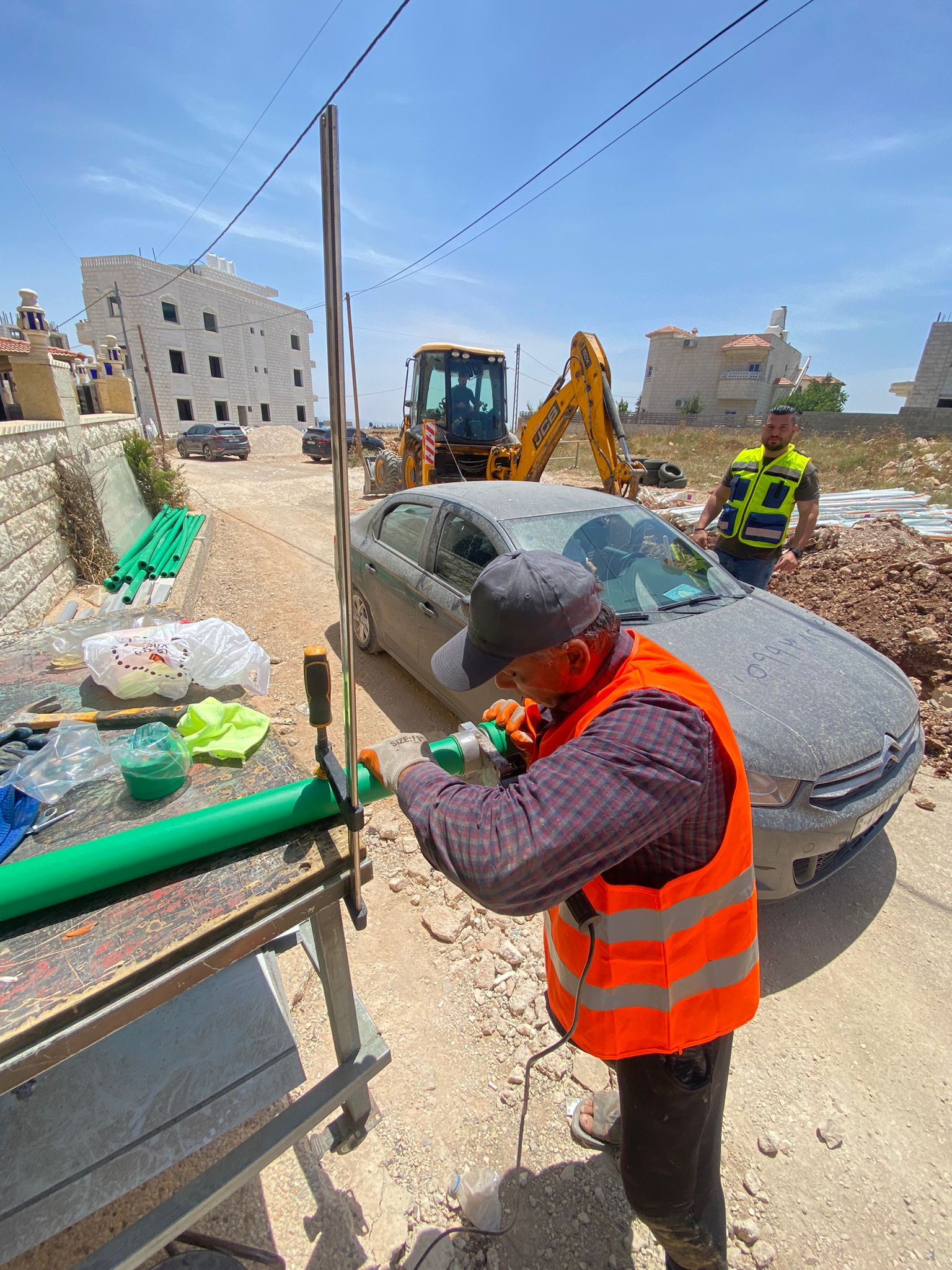 بالصور :- أعمال تعبيد مدخل وشوارع إسكان الموظفين "روجيب" في المنطقة الشرقية بمجموع أطوال 400 متر.