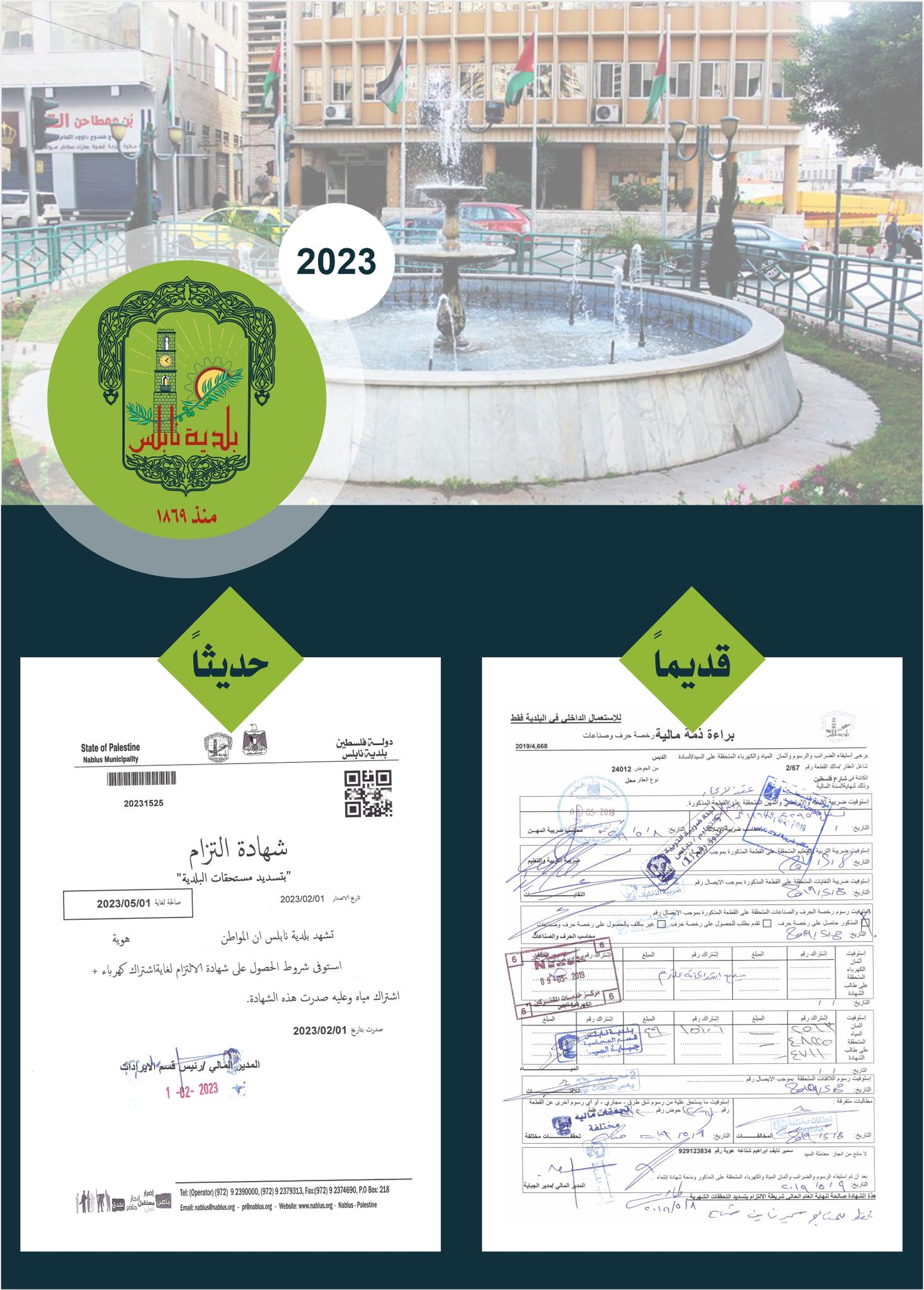 على المواطن وتوفيرا للوقت والجهد ، فقد عملت لجنة متخصصة في بلدية نابلس على مدار عدة شهور، لتطوير وتوحيد البيانات المتخصصة بطلب الحصول على شهادة التزام(براءة الذمة )، لتصبح أسهل وأسرع وأكثر دقة، حيث ومن خلال نافذة واحدة في قسم الجباية يستطيع المواطن الحصول على الشهادة وتسوية التزاماته ضمن النافذة الواحدة . حيث تم إصدار ما يقارب 2000 شهادة بهذه الطريقة منذ بداية العام الحالي 2023.