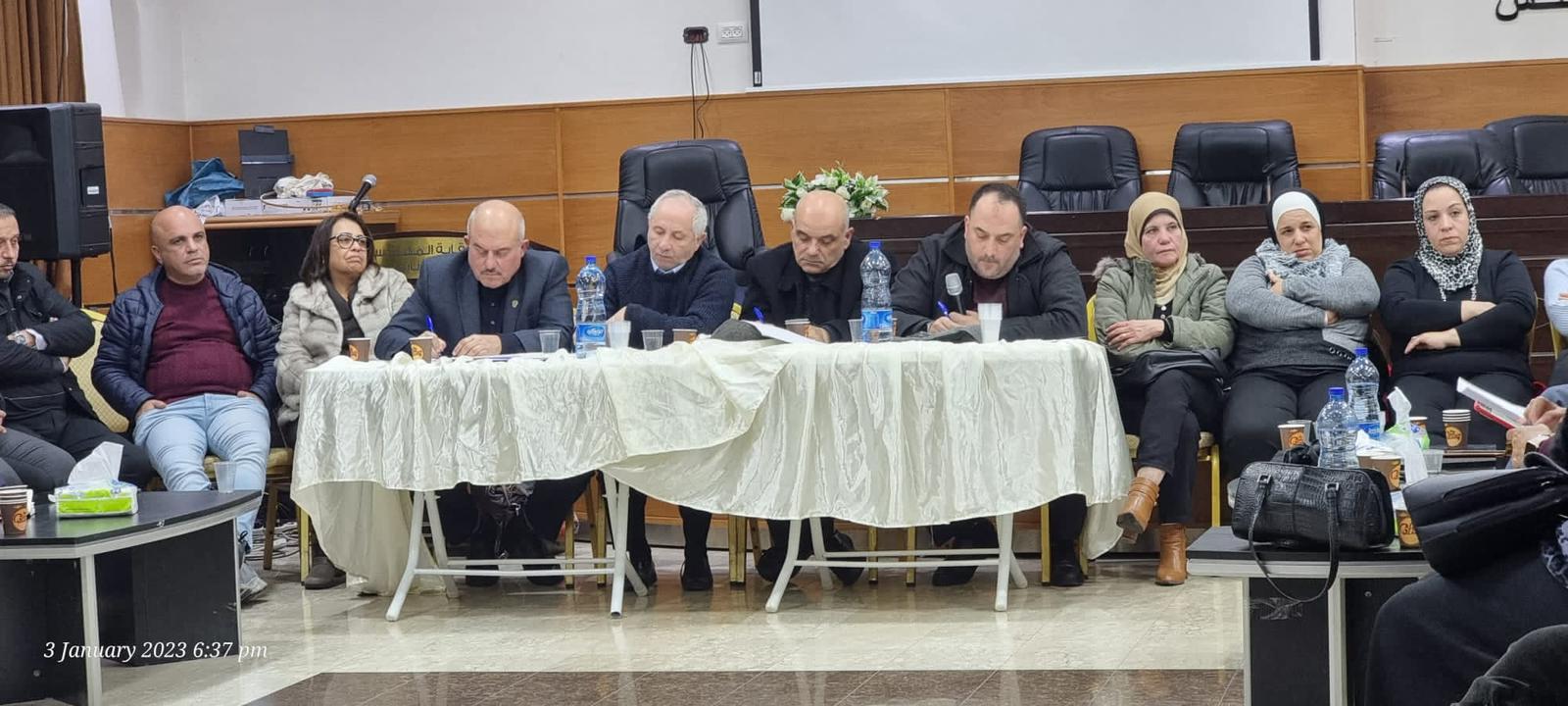 نابلس:- بدعوة من الهيئة التنسيقية لتجمع النقابات المهنية وتجمع مؤسسات المجتمع المدني وتجمع الدواوين وعائلات نابلس وتجمع أبناء البلد عقد مساء أمس الثلاثاء 3.1.2023 إجتماع موسع مع رئيس بلدية نابلس د.سامي حجاوي واعضاء المجلس البلدي وذلك في مقر نقابة المهندسين حضره الهيئات الإدارية واللجان الفرعيه للتجمعات الاربعة .