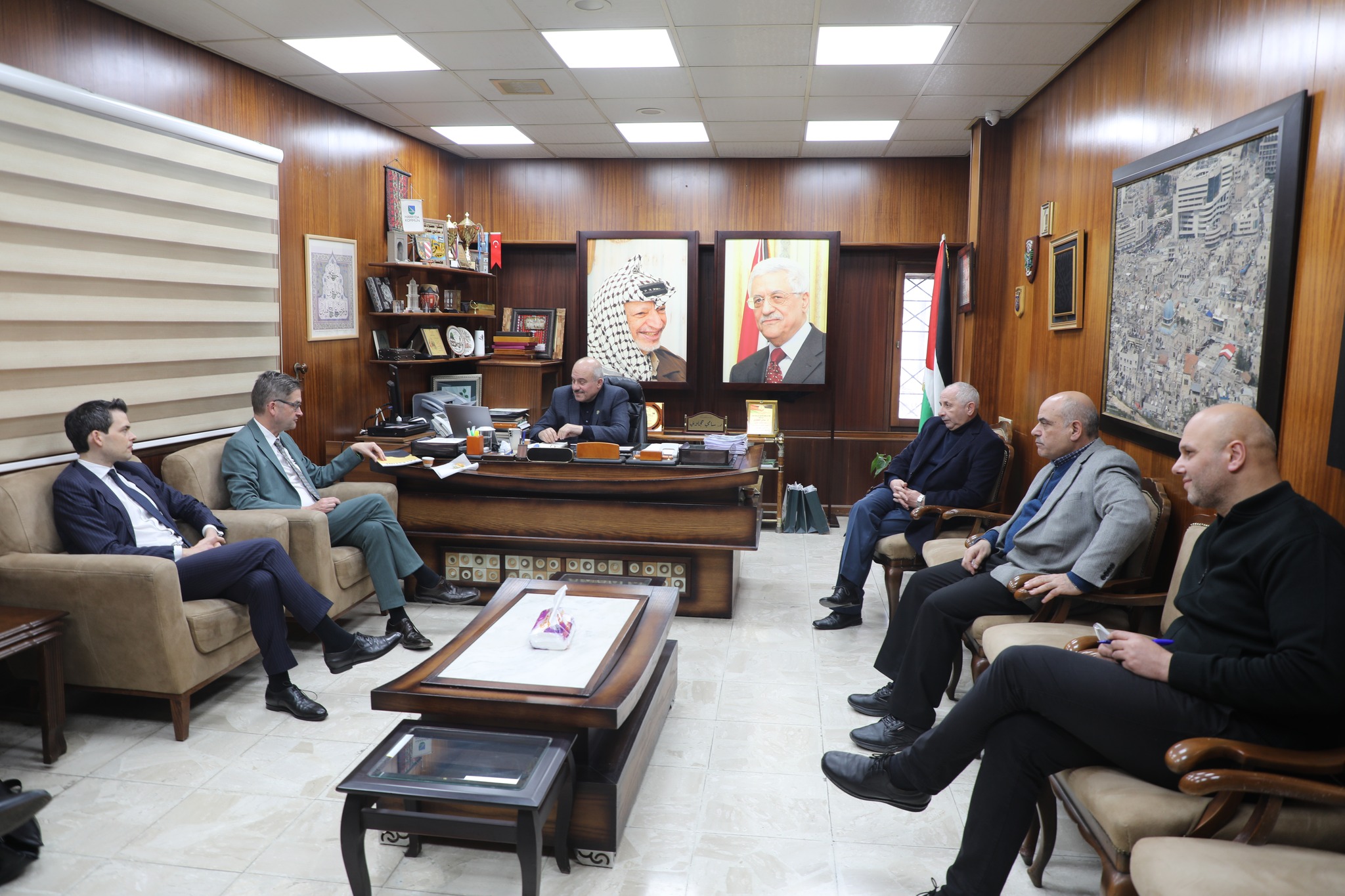 استقبل رئيس بلدية نابلس الدكتور سامي حجاوي في مكتبه هذا اليوم السيد أوليفر أوفتشا، سفير جمهورية ألمانيا الإتحادية في فلسطين، يرافقه السيدين كريستوف بلوس، عضو البرلمان الألماني، وستيفين هوفنر، مدير مؤسسة (كونراد أديناور) في فلسطين. وحضر اللقاء نائبا رئيس البلدية، الدكتور حسام الشخشير والمهندس خالد سلامة.