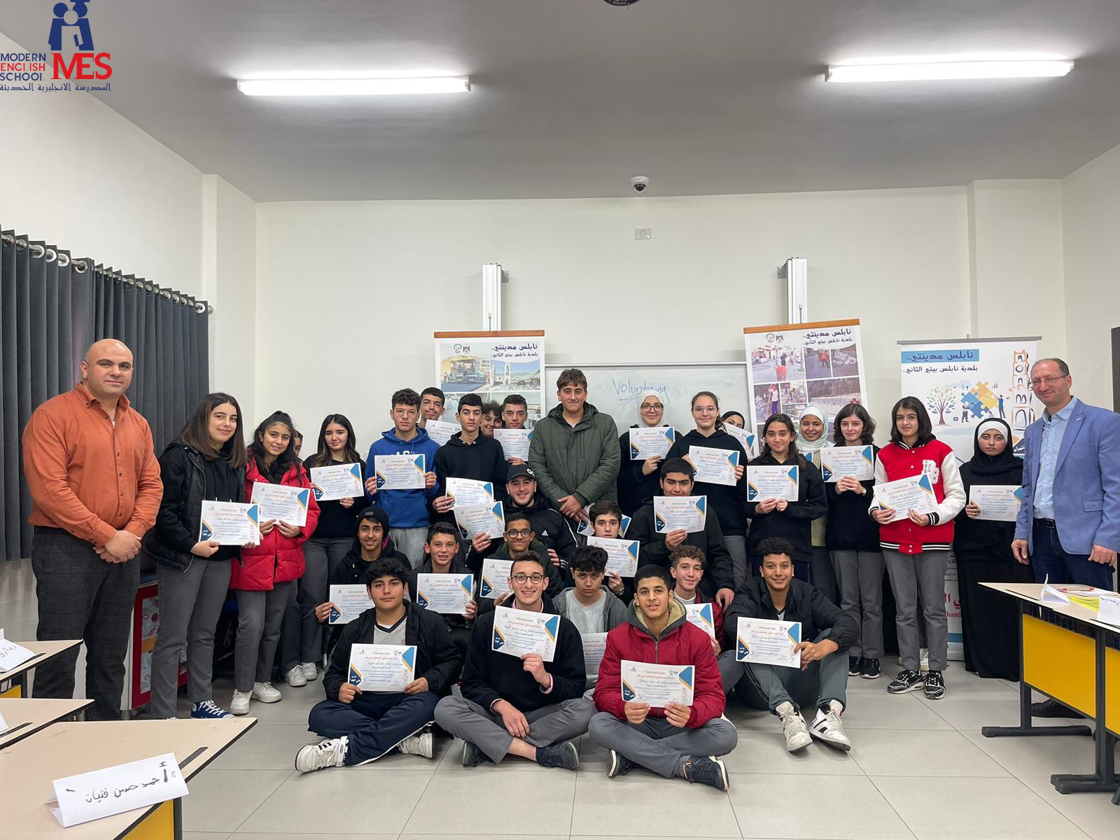 بلدية نابلس بيتي الثاني " حيث قام وفد من قسم العلاقات العامة والدولية لبلدية نابلس ممثلة بالأستاذ "علاء راغب الجيطان" وبالتنسيق مع إدارة المدرسة الإنجليزية الحديثة بعمل ورشة عمل تعريفية تفاعلية لمهام البلدية والتحديات التي تواجهها لإشراكهم في التغلب عليها وايجاد الحلول الملائمة.