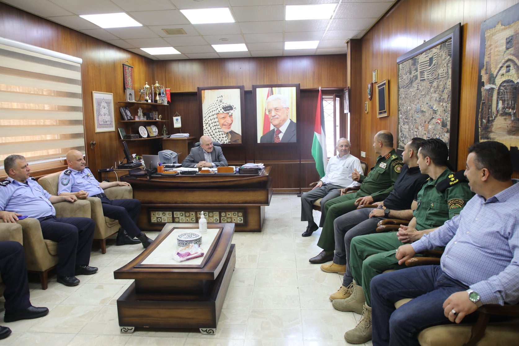استقبل رئيس بلدية نابلس الدكتور سامي حجاوي ونائبه الدكتور حسام الشخشير يوم أمس، قائد منطقة نابلس العميد محمد سلامة يرافقه عدد من ضباط جهاز الأمن الوطني ، بالإضافة إلى مدير شرطة محافظة نابلس العميد ثابت السعدي يرافقه عدد من مدراء الدوائر في الشرطة، وبحضور السيد امجد عيران رئيس قسم الحراسة والتفتيش في البلدية. وفي بداية اللقاء قدم الحضور التهاني لرئيس البلدية والمجلس البلدي على استلام مهام إدارة البلدية.
