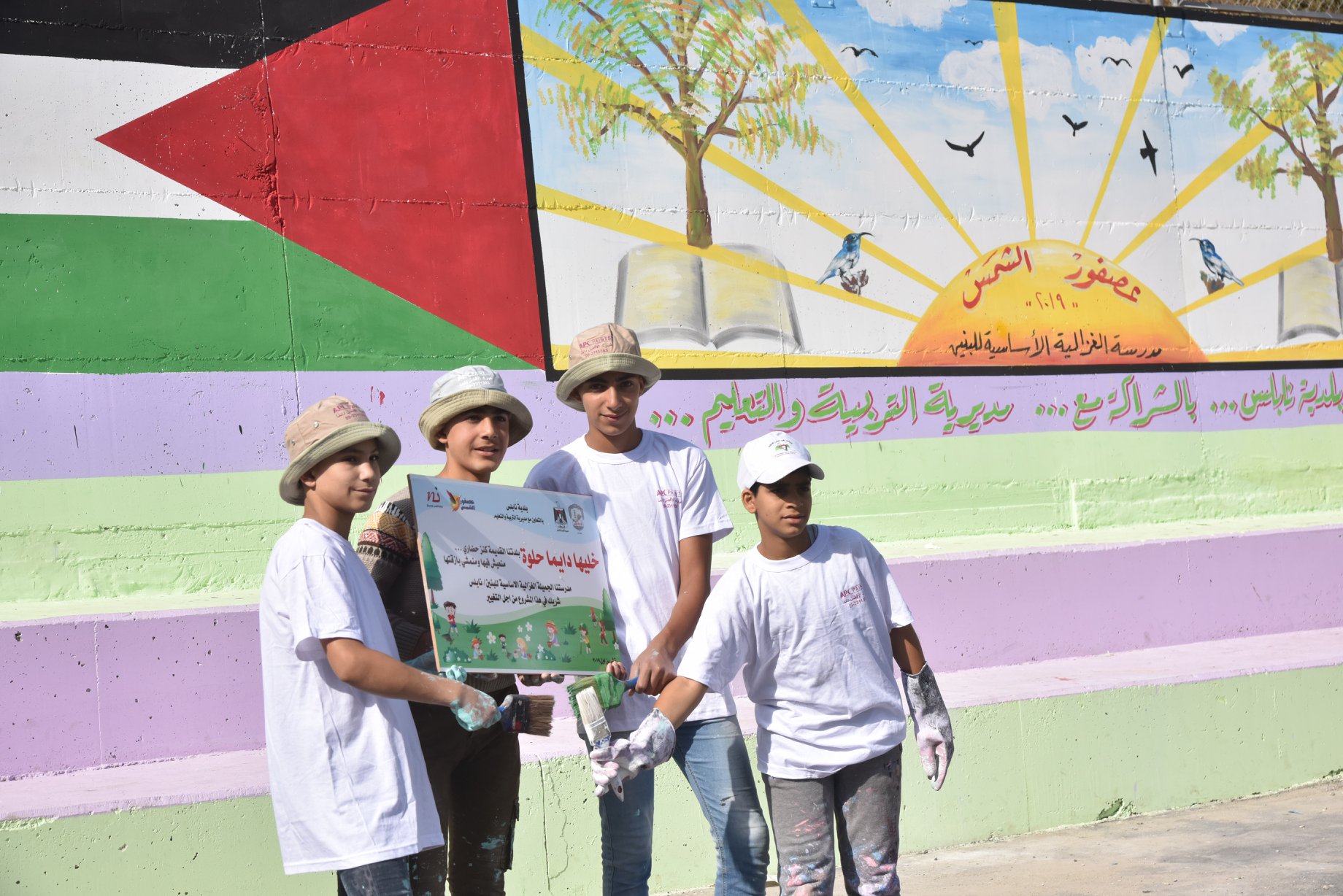 تجميل جدران مدرسة الغزالية ضمن مشروع عصفور الشمس الفلسطيني