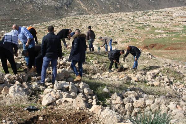 مشاركة بلدية نابلس في فعالية زراعة أشجار في خربة طانا في منطقة بيت فوريك