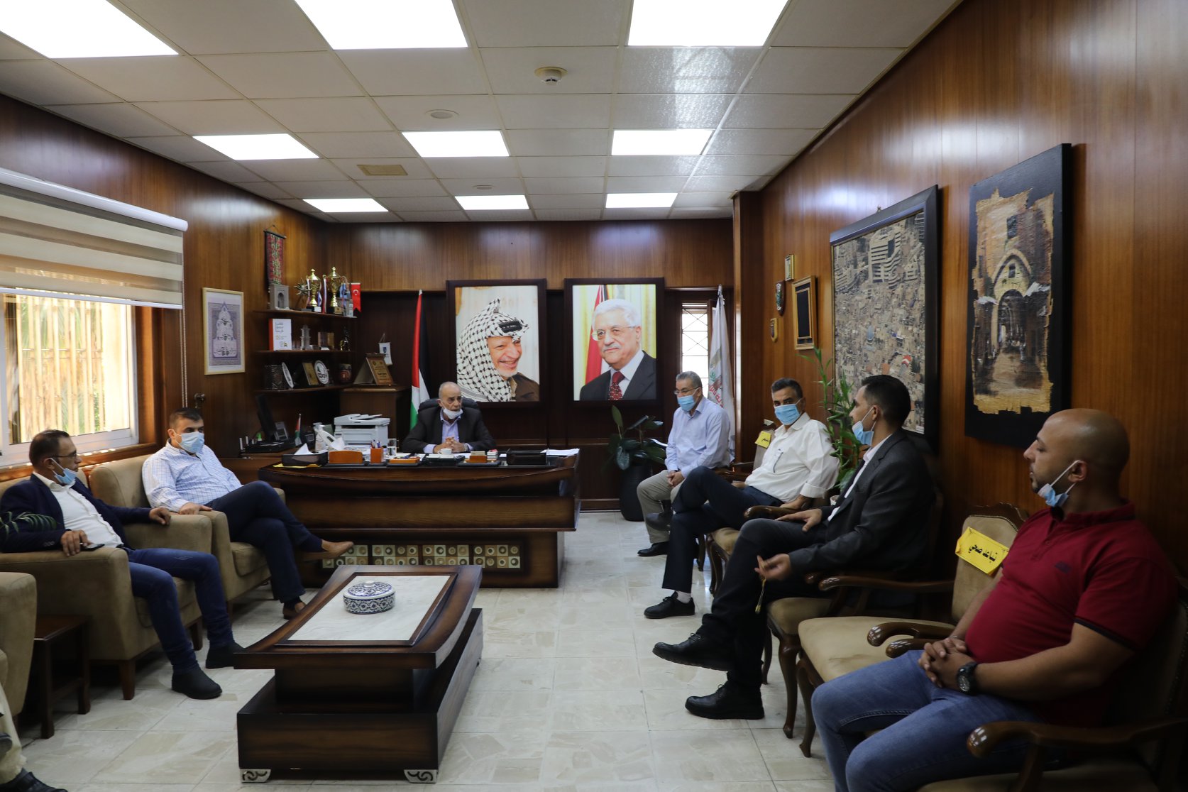 بالصور :- جانب من استقبال رئيس بلدية نابلس سميح روحي طبيلة للأسير المحرر سمير أحمد أبو فايد، والذي أمضى 18 عام داخل السجون الاسرائيلية الظالمة، من مخيم عسكر القديم، يرافقه السيد حسني عودة رئيس لجنة خدمات شؤون اللاجئين، والاسير المحرر خالد ابو كاملة.