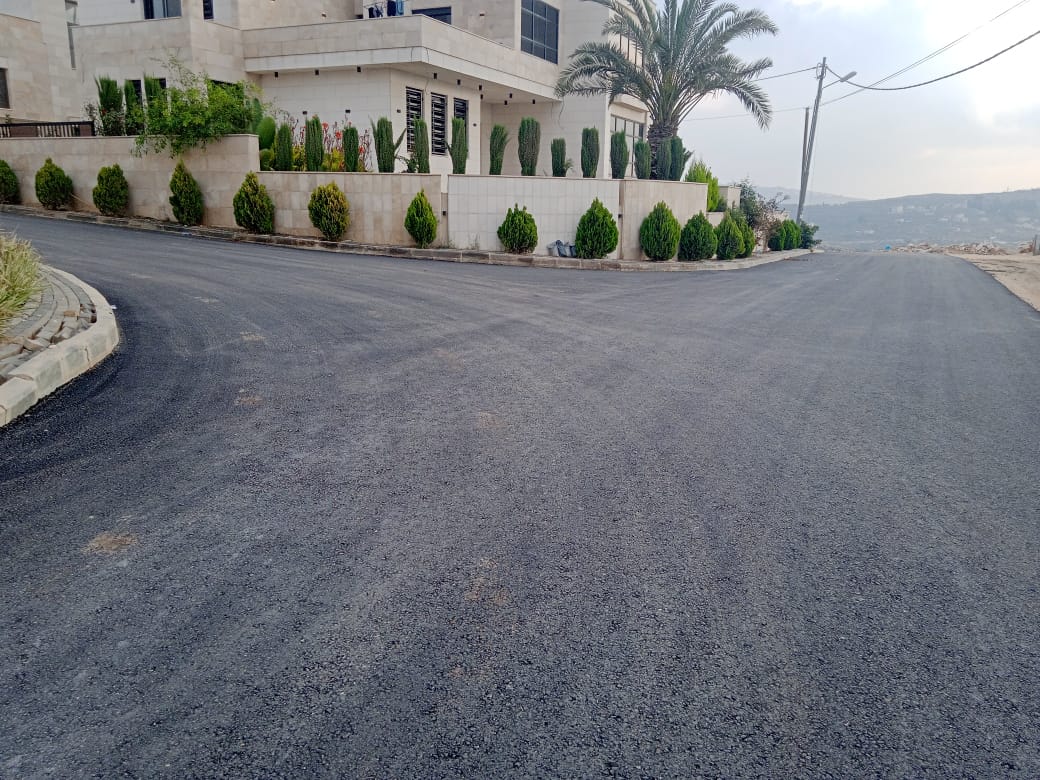جانب من أعمال تعبيد شارع متفرع من منطقة العامرية بطول 300 متر وعرض 6 متر، و تعبيد شارع أخر متفرع من إسكان المهندسين إلى الإسكان الفلسطيني بطول 330 متر وعرض 5 أمتار. بإشراف قسم الأشغال في الدائرة الهندسية.