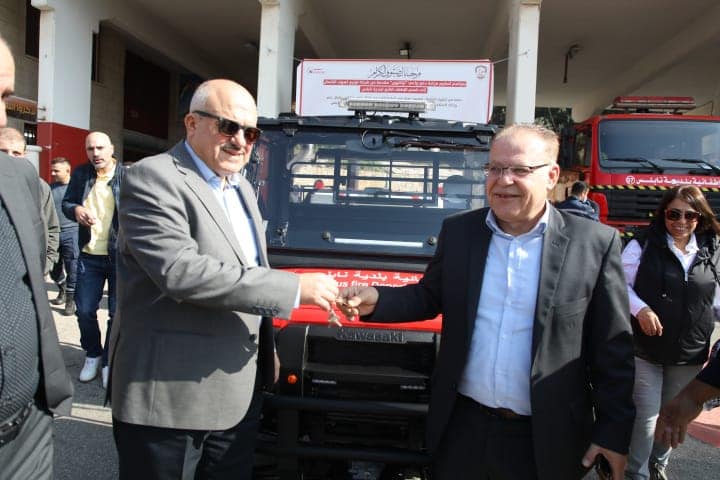 اطفائية بلدية نابلس تتسلم مركبة اطفاء صغيرة