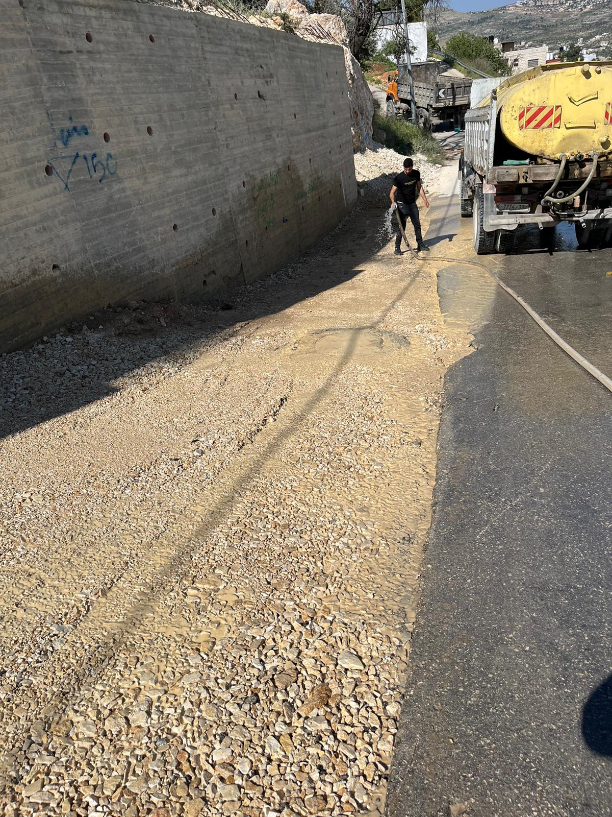 قسم الأشغال – الدائرة الهندسية :- جانب من أعمال توسيع شارع عسكر البلد بطول 300 متر، من جهة مسجد الحمد وحتى شارع مدرسة ملحس تمهيدا للتعبيد.