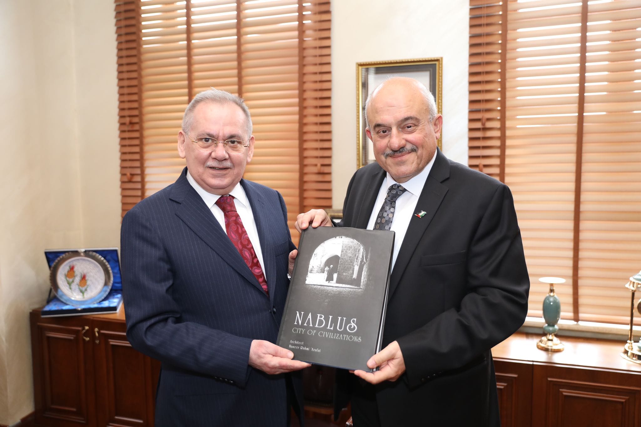 وقع رئيس بلدية نابلس د. سامي حجاوي خلال زيارته لمدينة سامسون Samsun التركية بحضور نائب سفير دولة فلسطين في تركيا الأخت رنا أبو صيبعة اتفاقية توأمة مع بلدية هذه المدينة التي يبلغ عدد سكانها مليون وثلاثمائة الف نسمة..وقد وقع الاتفاقية عن بلدية سامسون رئيسها المهندس مصطفى ديمير الذي سبق وأن تولى وزارة الأشغال العامة في الحكومة التركية وعضوية البرلمان التركي..وقد جرى خلال الاجتماعات التي تمت بحث احتياجات بلدية نابلس، وأبدى رئيس البلدية كل الاستعداد لدعم احتياجات بلدية نابلس في المجالات المختلفة وتدريب الطواقم في مجالات النفايات الصلبة والمواصلات والحدائق وغيرها، وأكد نيته تلبية الدعوة لزيارة نابلس مع طاقم فني من المهندسين والمستشارين قبل نهاية العام الحالي..وقد تم خلال الزيارة لقاء مع والي محافظة سامسون وكذلك زيارة بعض مرافق البلدية ومحطة جمع وتكرير النفايات الصلبة.. كما التقى رئيس بلدية نابلس خلال الزيارة مع مجموعة من الطلبة الفلسطينيين الدارسين في جامعة ١٩ مايو في سامسون بناء على طلبهم.. يذكر أن هناك أكثر من ١٠٠ طالب فلسطيني يدرسون في جامعات المدينة من مختلف محافظات الوطن..