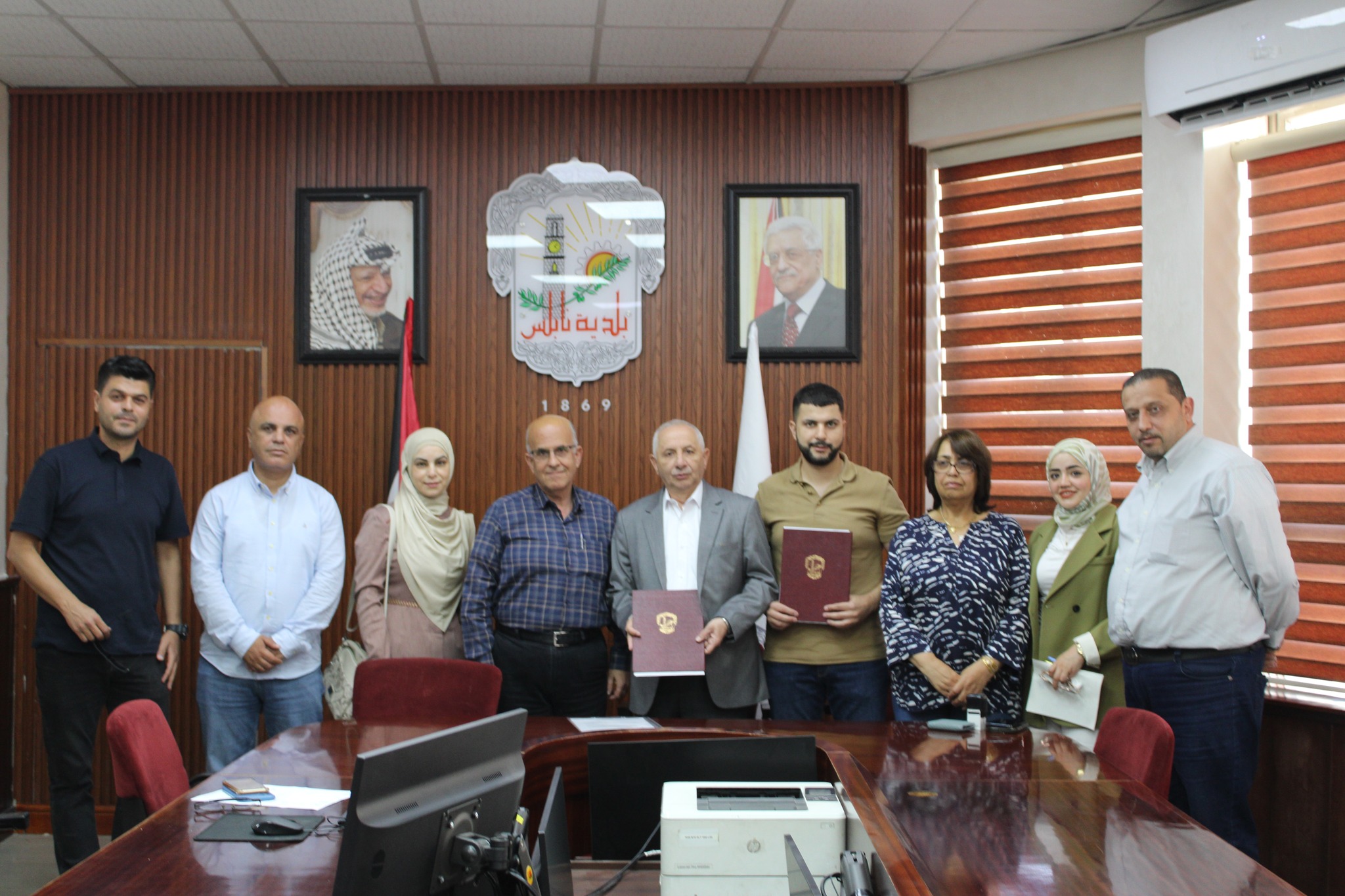 وحضر التوقيع نائب رئيس البلدية الدكتورة زهرة الواوي، ومدير مديرية الحكم المحلي المهندس سامر الخماش ، ومهندس بلدية نابلس سائد سالم ورئيس قسم العطاءات والمشتريات مجدي الاتيرة، ومديرة المشاريع في مديرية الحكم المحلي المهندسة بهيسة الأسعد.