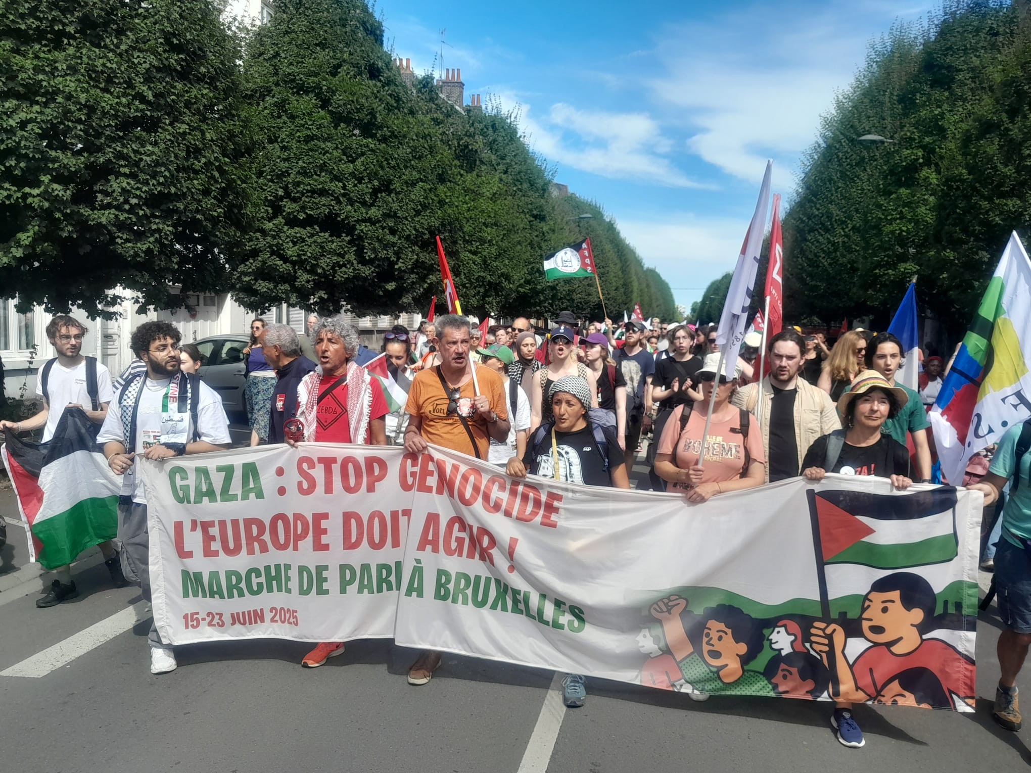 من مدينة ليل الفرنسية، حيث خرج المئات قبل يومين في تظاهرة انطلقت منها وستنتهي في العاصمة البلجيكية بروكسل تنديدا بحرب الإبادة على غزة ورفضا للعدوان على شعبنا.