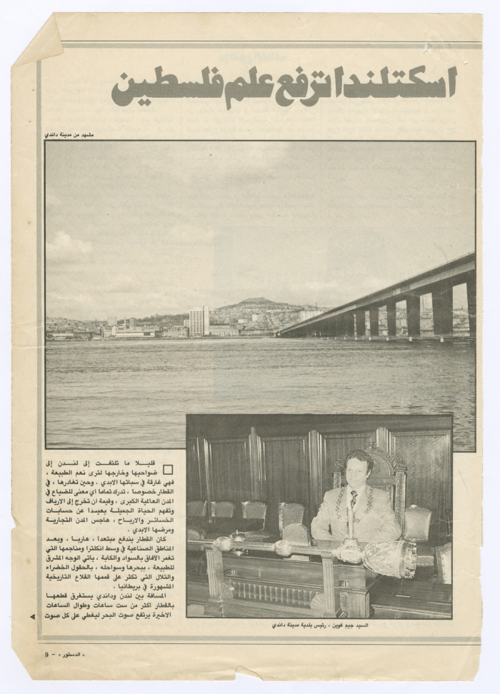 شهد العام 1982 توقيع أول اتفاقية توأمة لمدينة نابلس، في عهد رئيس بلدية نابلس الأسبق المرحوم بسام الشكعة ضمن ما يعرف بالموجة الأولى لبدلوماسية المدن الفلسطينية. وقد وقعت هذه الاتفاقية مع مدينة دندي الاسكتلندية.