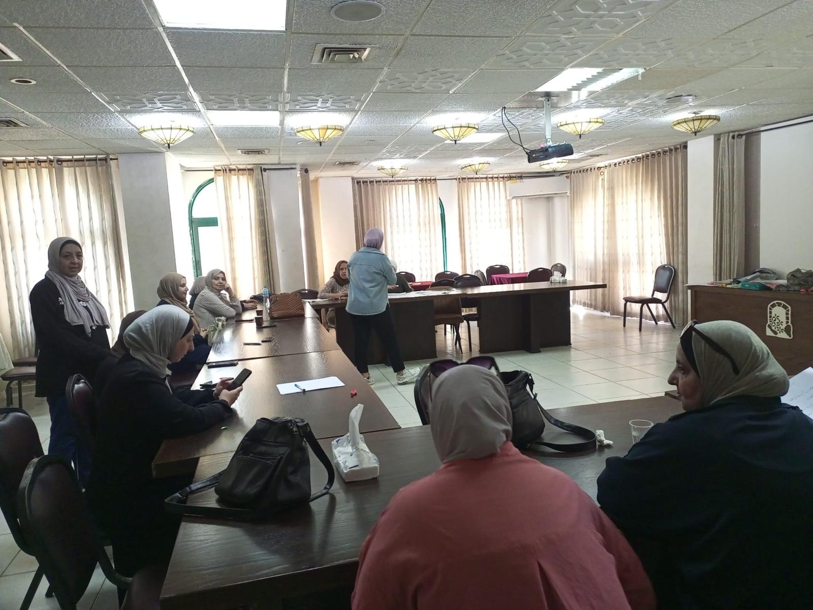 جانب من ورشة عمل نفذها مركز ركن المرأة التابع لبلدية نابلس في مجال الرعاية الذاتية والنفسية ، والذي استهدف 15 سيدة من موظفات البلدية من الأقسام المختلفة ، ضمن مشروع الحماية والاستجابة للعنف المبني على النوع الاجتماعي وبالتعاون مع المركز الفلسطيني للإرشاد و بدعم من صندوق الأمم المتحدة للسكان UNFPA.